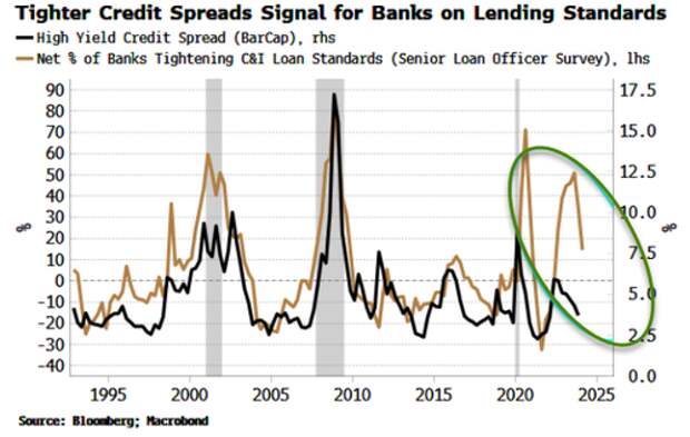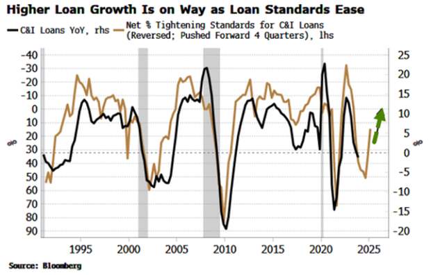 This is potentially positive, as when banks make it easier to get a loan, it typically leads to rising loan growth over the next year or so.