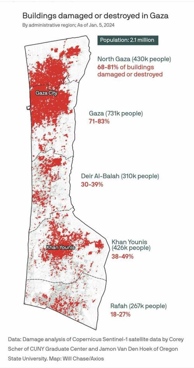 A new report in Axios has made the shocking claim that over half of all buildings in Gaza have been damaged or destroyed, based on fresh satellite data.