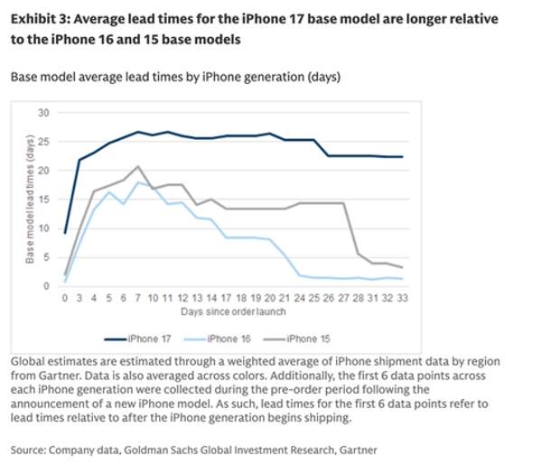 On Tuesday, a team of Goldman analysts led by Michael Ng told clients that iPhone 17 demand is tracking ahead of the iPhone 16 series, supported by longer lead times, higher production builds, and positive carrier feedback.