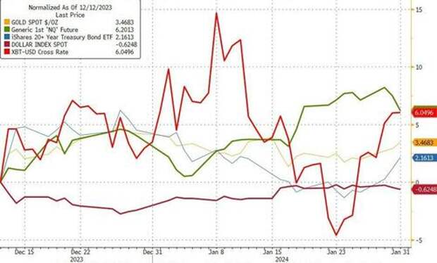 Since The Fed's (uber dovish) last meeting on December 13th, the dollar is down, bonds and gold are up, and bitcoin and big-tech are surging... in other words - the QE-trade or 'buy all the things'.