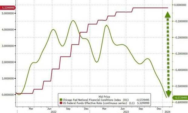 The Fed removed any reference to "tighter financial conditions", which makes sense given that financial conditions have massively loosened...