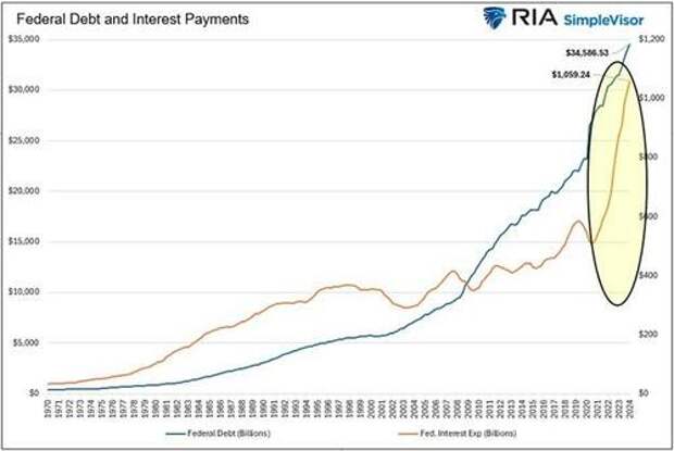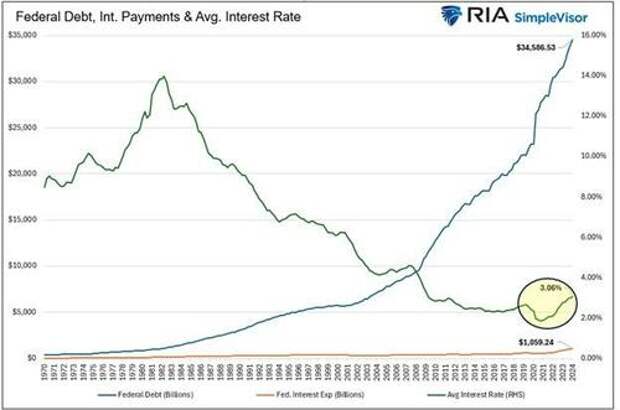 While the situation may sound gloomy, lower interest rates solve the problem. If interest rates return to the levels existing before 2022, the interest expense could easily fall below $700 billion, about half of the cost than if rates remain at current levels.