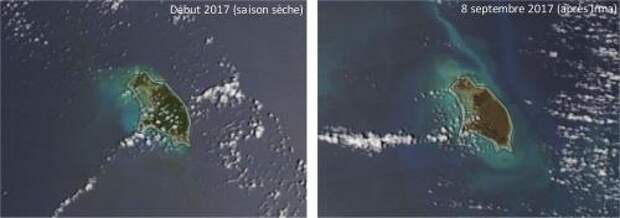 And here is a similar photo from space showing the mostly destroyed island of St. Marten