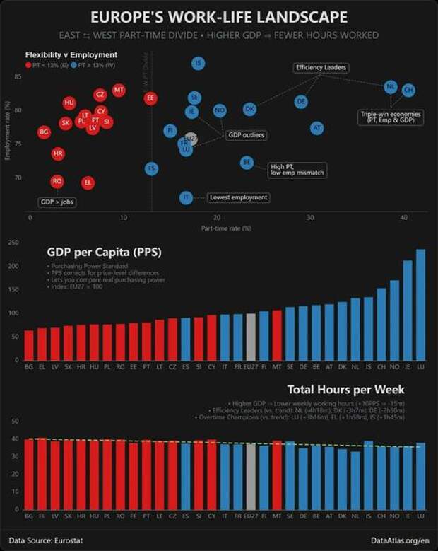 Across most of Europe, prosperity tends to align with flexibility, reduced working hours, and higher employment rates, yet cultural traditions and unique economic factors continue to shape these exceptions.