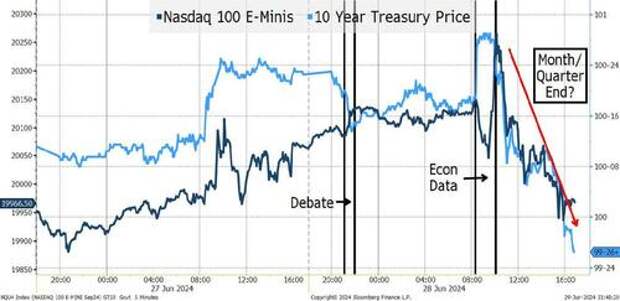 The Nasdaq 100 decided to follow Treasury prices and moved almost in lockstep with them. Whether there was causation or not remains to be seen. It was month-end and quarter-end, so that could have had an impact, though normally the “rebalancing” trades create both demand and supply for stocks/bonds. However, both were for sale. One “assumption” many use is that month-end is good for bonds, as index trackers “extend” duration into the close. That didn’t occur, again, making us wary of assumptions and rules of thumb. Adding to that, NVDA, which has been one of our main “tells” was higher for most of the day, before finishing the day lower.