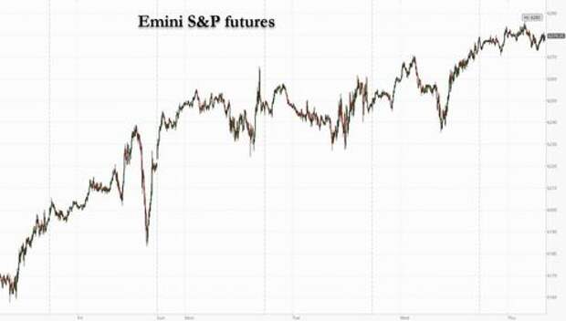 Payrolls are the key event of a trading day which finishes at 1 pm. Consensus has the print at 106K, while the whisper number is 96K and the Bloomberg Economics’ Nowcast model forecasts job gains of 119k, higher than consensus while Goldman expects a downbeat 85K number. Scenarios laid out by JPMorgan see the S&P as most likely to rise after the data, though a reading of less than 85k would lead to a 2% to 3% drop for the index. A poor number ( especially after the negative ADP jobs reading) would strengthen the case for a July rate cut and would add to pressure on Fed Chair Powell, who has repeatedly declined to say whether he will step down when his term as chair expires in May. European stocks are also little changed; Siemens is higher after saying the US has dropped its restrictions on software, used to design semis, exports to China, CDNS/SNPS are both up more than 6%. The Dollar is mixed but trading in tight ranges across G10: sterling is recovering this morning in tandem with GILT's after the UK Prime Minister Starmer confirmed Chancellor Reeves has his backing yesterday, alleviate further fiscal uncertainty. US bond yields are lower reflecting heighten downside risk to NFP today; the 10Y at 4. 26%. Commodities are higher led by ags, base/precious, and oil. Besides the jobs report, we also get the ISM services index for June, the weekly initial jobless claims, as well as the trade balance and factory orders for MayIn premarket trading, Magnificent Seven stocks are mixed (Tesla, Meta +0.6%, Amazon +0.2%, Microsoft -0.03%, Alphabet -0.03%, Nvidia -0.06%, Apple -0.5%).