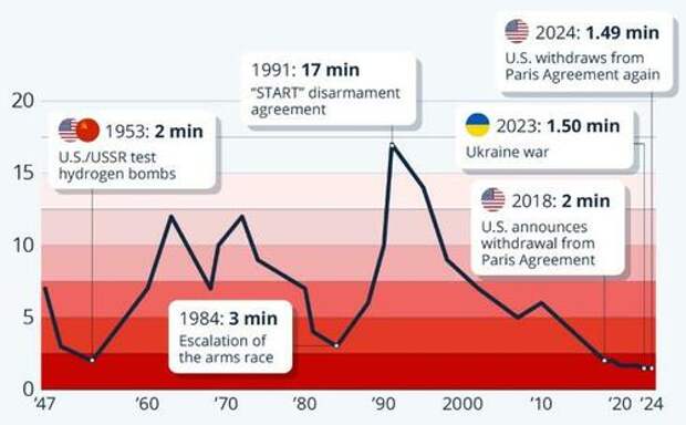 In 2024, humanity edged ever closer to catastrophe. Trends that have deeply concerned the Science and Security Board continued, and despite unmistakable signs of danger, national leaders and their societies have failed to do what is needed to change course. Consequently, we now move the Doomsday Clock from 90 seconds to 89 seconds to midnight—the closest it has ever been to catastrophe.
