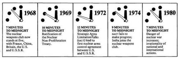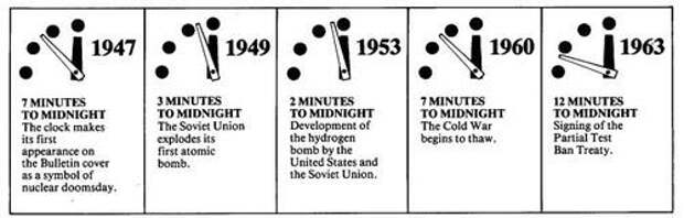 The Doomsday Clock, or the Nuclear War Clock, represents how close we are veering towards a human-made global catastrophe.