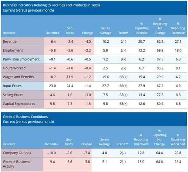Labor market measures suggested further declines in employment, though hours worked were largely unchanged this month. The employment index fell slightly to -5.8 from -3.6 in September...