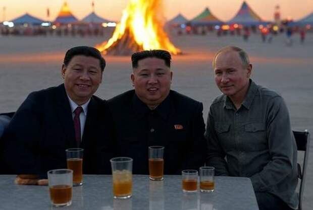 “Win-win co-operation or zero-sum rivalry?” continued Xi, his People’s Liberation Army rolling its tanks across Tiananmen Square as it does from time to time.“The Chinese people firmly stand on the right side of history and on the side of human civilization and progress.” North Korea’s pudgy leader stood with Xi. Russia’s little dictator too. A proper Burning Man festival for autocrats.