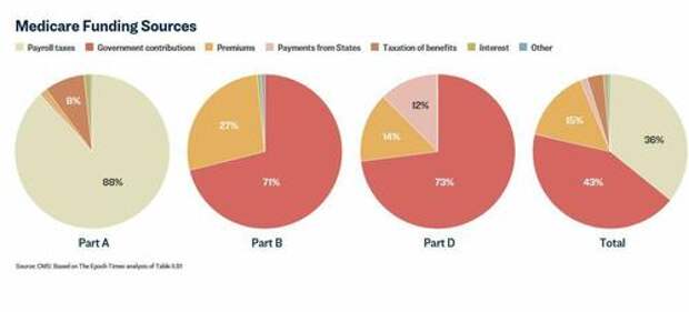 People who qualify for Medicare can opt into Parts B and D by paying a premium. Part B also receives some income from interest on the fund balance, and states contribute to support Part D.