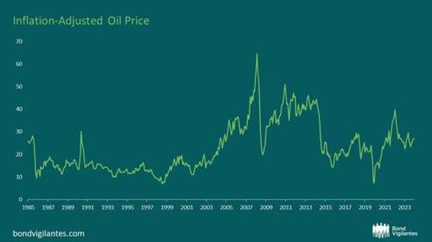 Looking at inflation-adjusted oil prices in the US, we see that prices are in fact sitting at the long run average: