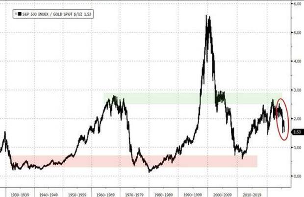 Equity indexes like the S&P 500 are well off their nominal highs when you measure them in gold instead of dollars.