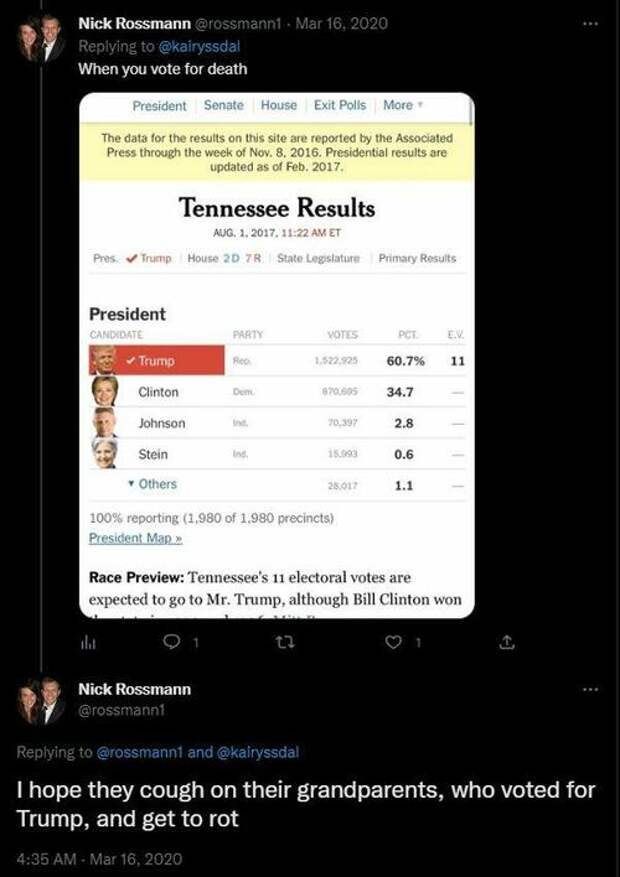 Hoping Trump voters cough on their grandparents (giving them COVID) & “get to rot”- archive.is/rppqw