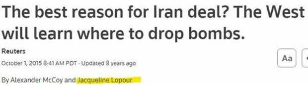 In 2015, Lopour authored a rather bizarre article titled: “The best reason for Iran deal? The West will learn where to drop bombs.”
