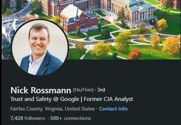 Nick Rossmann spent over 5 years at the CIA before joining Google in 2022 as Senior Manager of Trust & Safety. His activity on Twitter/X is troubling, especially considering his current position in content moderation.