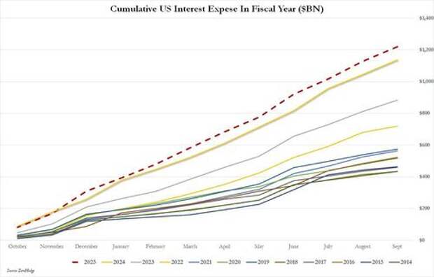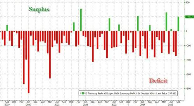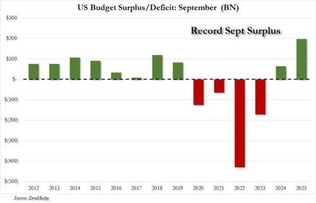 Those looking for data on the US budget deficit contained in the Monthly Treasury Statement had to wait a few weeks because of the government shutdown, but better late than never, and today at 2pm, the Treasury unveiled the US income statement for the just concluded fiscal year 2025. It was ugly, but not as ugly as it could have been and the month of September was outright impressive.
