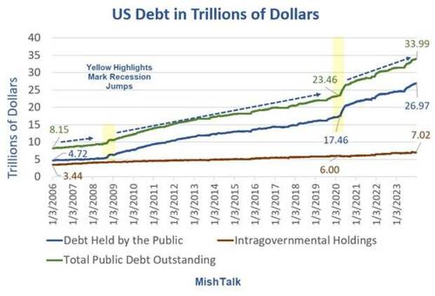 Meanwhile please note Debt Jumps Past $34 Trillion, $1 Trillion Interest