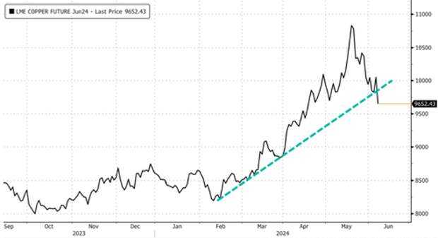 But in recent weeks, prices have tumbled, breaking a critical trend line that has been intact for months. Now, prices are teetering on a knife-edge, with trading desks and hedge funds speculating on what comes next.Let's begin with comments from the world's top copper trader - and as Bloomberg's Jack Farchy puts it, "usually one of the market's most bullish voices" - who called the price surge unjustified due to real-world supply.