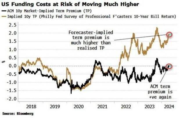 The amounts are eye-watering - $243 billion in 2Q and $847 billion in 3Q - and unthinkable outside a recession only a few years ago. The market is gradually waking up to the Treasury put and the realization the fiscal deficit is unlikely to go back to a non-recessionary norm any time soon. Term premium is rising as lenders demand greater compensation for holding longer-term debt.