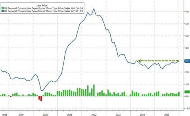 The headline PCE rose 0.4% MoM (more than expected too) driving prices up 2.9% YoY (the highest since March 2024)