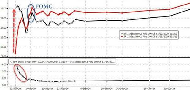 ..which then provides quite a “Short Vol / Short Skew / Short Correlation” opportunity for the post Op-Ex snapback rally to gain further legs, even despite all the boogeyman of the Vol bottoming / bullish VIX seasonality into August which was a further contributor to last week’s de-risking movement...Source: Bloomberg