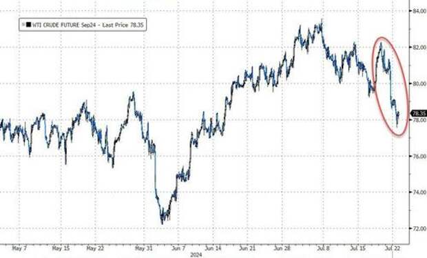 Oil actually extended its trend lower though with WTI back below $80...