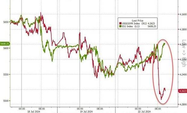 In response, US Equities are bullishly trading "DC gridlock", as Nomura's Charlie McElligott suggests the downstream Democrat elections odds in House races are being perceived as having greatly improved their win probabilities post the party coup removal of Biden.