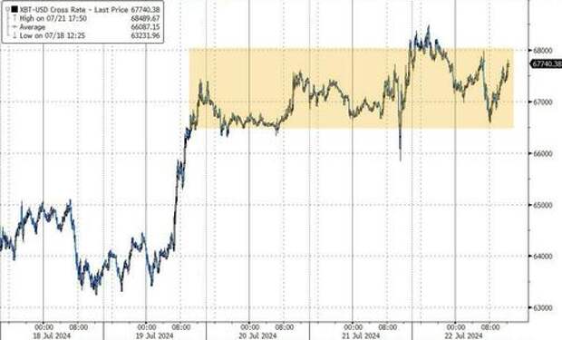 Bitcoin chopped around between $67k and $68k, holding on to Friday's gains (another example of NOT unwinding the Trump trade)...