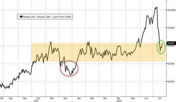 The Nasdaq/Russell 2000 pair found support in its nine-month range and bounced today...