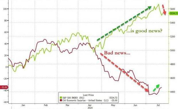 Finally, the 'bad news is good news' trade appears to in opposite land for now as 'good economic news has recently been bad news for stocks'...