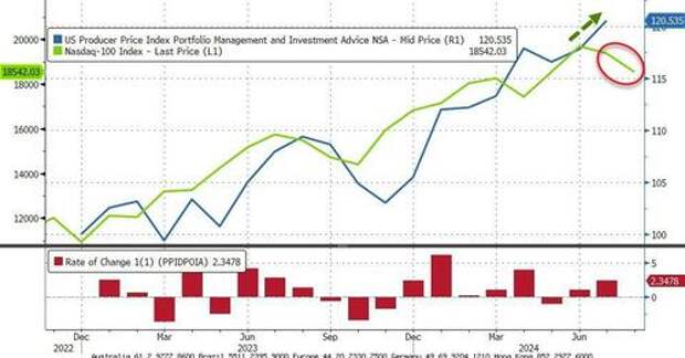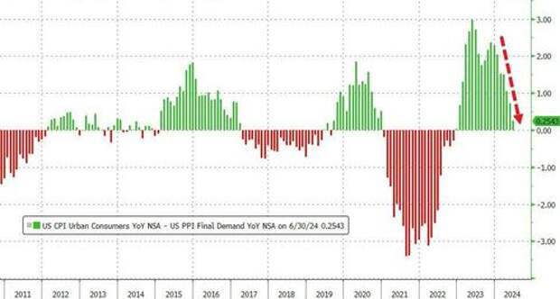For stocks, the read-through to profit margins is less welcome and may stymie gains, as companies are feeling the squeeze as they eat the difference between CPI and PPI...