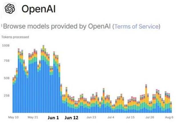 The first is a chart depicting the use of ChatGPT. (Source: OpenAI Usage Plummets in the Summer, When Students Aren't Cheating on Homework.)