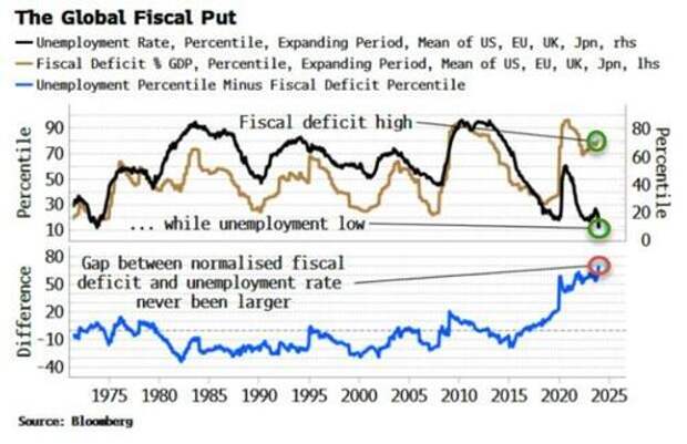 This is not just a US phenomenon. Across much of the developed market, budget deficits have never been as high while unemployment has been as low.