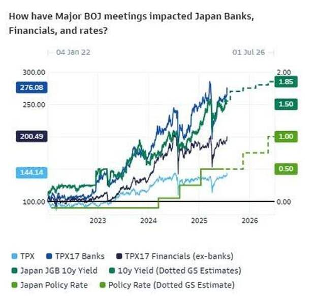 - Pricing for BoJ hikes returns - With the clearing of trade uncertainty and reduced tariff impact, markets are pricing for an earlier BoJ hike. Banks stocks move higher