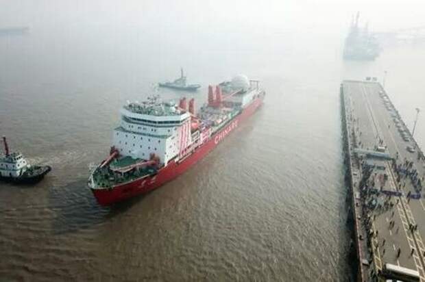 Chinese ice-breaker Xuelong, or “Snow Dragon,” sets off from a port in Shanghai on Nov. 8, 2017. Xuelong steamed south from Shanghai on Nov. 8, bound for Antarctica to establish China's newest base as Beijing strives to become a polar power. (STR/AFP via Getty Images)