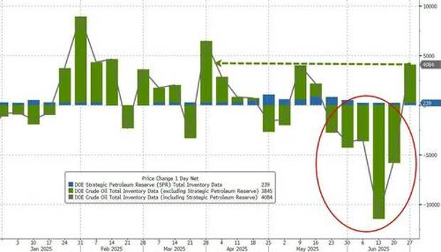 Including a small 239k addition to the SPR, last week saw the biggest build in total crude stocks since the start of April...