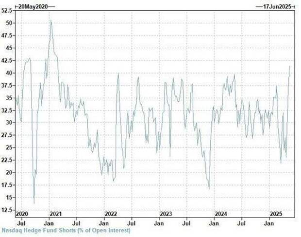 Viewed through another lens, Hedge Fund shorts as a percentage of total open interest reached 41% – the max dating back to February of 2021.