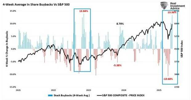 We are not “bearish” on the market because buybacks remain a powerful market influence over the next month. The recent surge has been the largest since the October 2022 market lows. However, those will begin to fade in the middle of June, which could weigh on markets into the Q2 earnings reports.