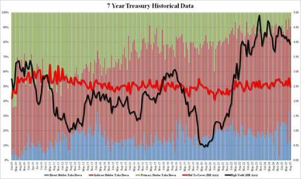 Moments ago, the US treasury completed the week's final auction when it sold $44 billion in 7Y paper in what was an ugly auction.