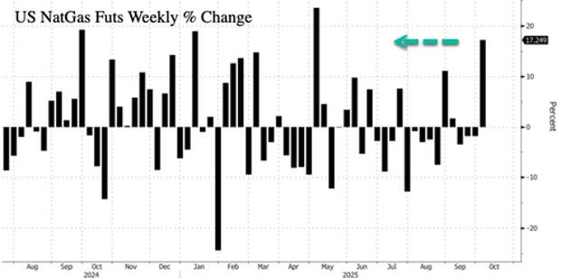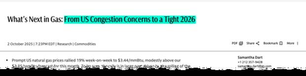 U.S. natural gas futures surged 17.3% last week, the largest weekly gain since early May. Goldman Sachs analysts offered context for the rally, noting that the market narrative has shifted "from U.S. storage congestion fears to tightening 2026 supply. "