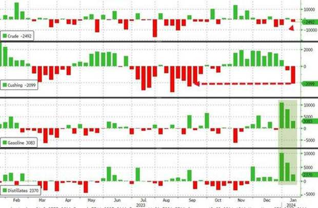 The official data confirmed API's large draw at Cushing but saw a bigger than expected crude draw also as product builds were bigger than expected (but smaller than API reported)...