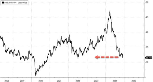 - "Entirely possible that Stellantis can get through this rough patch," but a bunch of potential headwinds such as CO2 compliance in Europe, Chinese competition, risk of US tariffs leave RBC on the sidelines