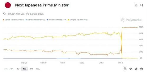 As Goldman trader Ippei Yamaura writes, the outcome was a shock: "Before the election began, polymarket were pricing an 80%+ probability of a Koizumi victory. Odds for Koizumi dipped somewhat as local vote tallies came in, but most observers still viewed developments as broadly in line with expectations. Betting markets held around 60–80% until the first-round result was released. The first-round outcome was largely in line with expert expectations (arguably a touch less favorable for Takaichi), and betting markets again raised the implied probability of a Koizumi win. However, in the runoff, Takaichi secured more Diet member votes than anticipated, reportedly with support from the Aso faction. Some Diet members who had backed Hayashi were also said to have shifted to Takaichi, as Hayashi did not whip his supporters for the runoff.