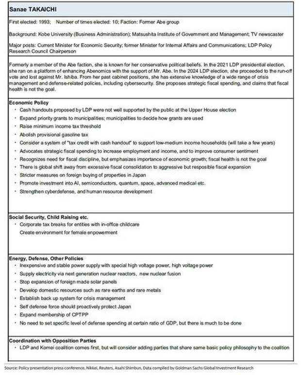 As Bloomberg notes, Takaichi is expected to become premier later this month in a parliamentary vote. In becoming the LDP’s chief, Takaichi has already smashed a glass ceiling in a nation that has only seen male ruling party leaders.