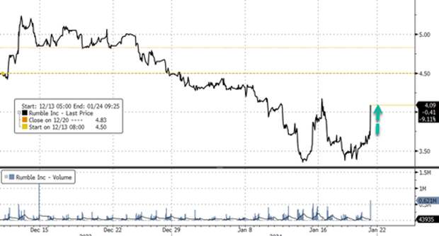Shares of the video-streaming platform Rumble jumped 15% in premarket trading in New York after announcing a partnership with Dave Portnoy's Barstool Sports.