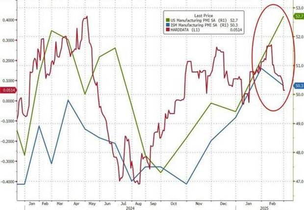 After Friday's (tariff-front-running-import-surge-driven) tumble in Atlanta Fed's GDPNOW accelerated growth scare anxiety in bonds (and stocks), this morning we see US Manufacturing PMI surge back into expansion (52. 7 - better than the expected 51.6) - its strongest level of implied growth since June 2022 (despite the slide in US Macro Surprise data over the past month).