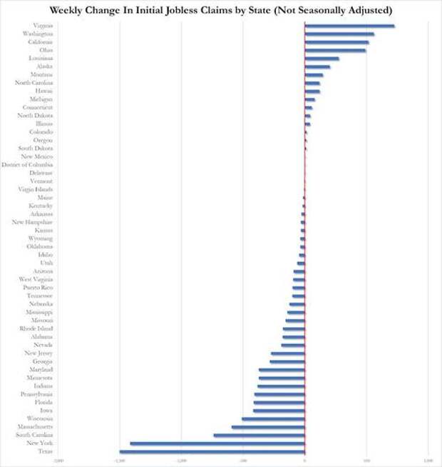 Texas and New York saw the biggest drops in initial claims...