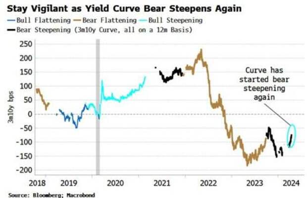 Rising longer-term yields are the other side of the coin in the bear steepening. The US government’s interest-rate bill is climbing rapidly, and is now over $1 trillion on an annual basis. This is set to grow much higher.