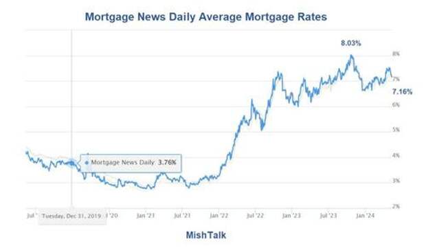 On January 1, 2020 the mortgage rate was 3.76. Now it’s 7.16% with home prices up 47.2%.
